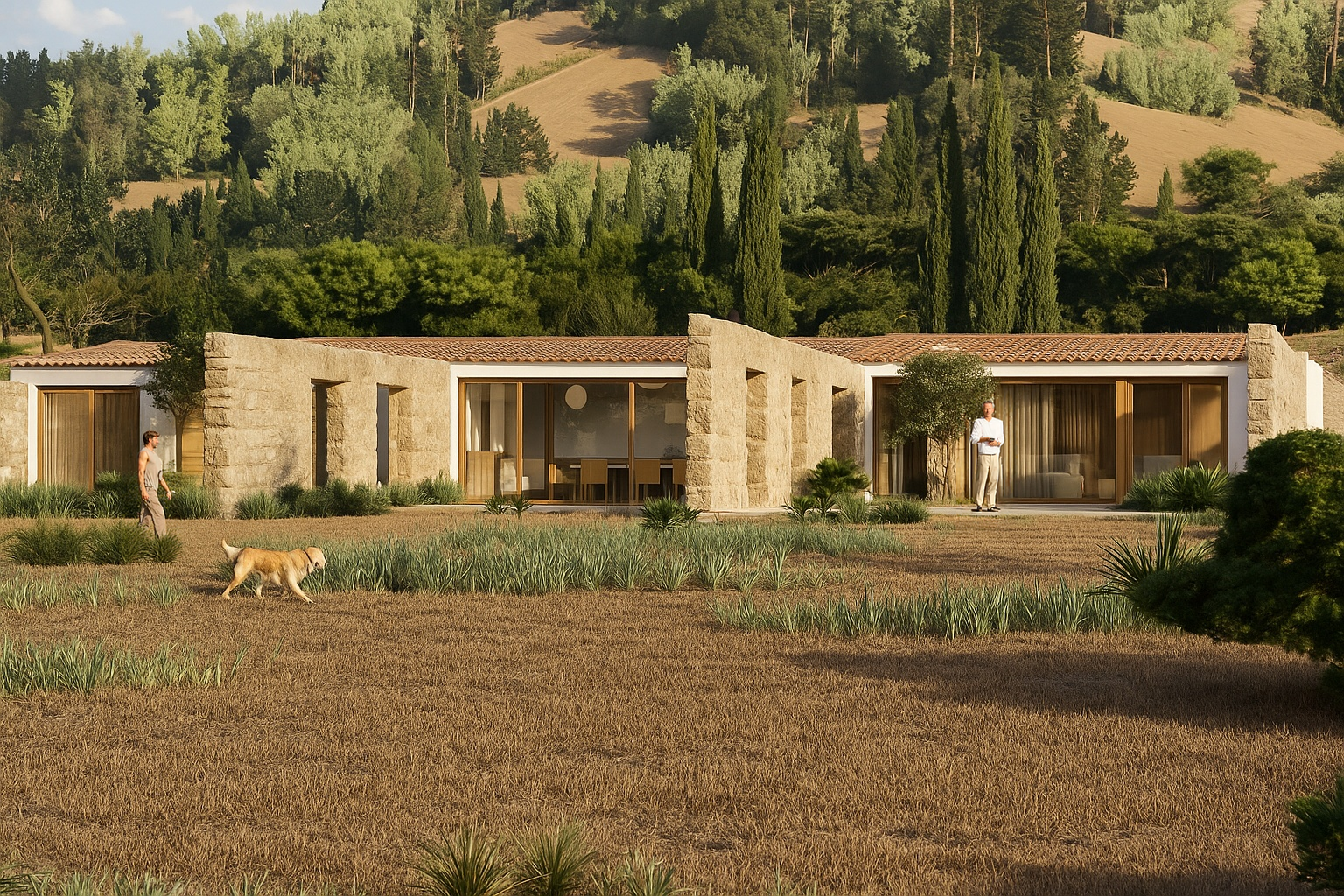 En un contexto lleno de pinos y vegetación mediterránea, la propuesta de diseño integra las viviendas de forma natural en el paisaje que las acoge.
