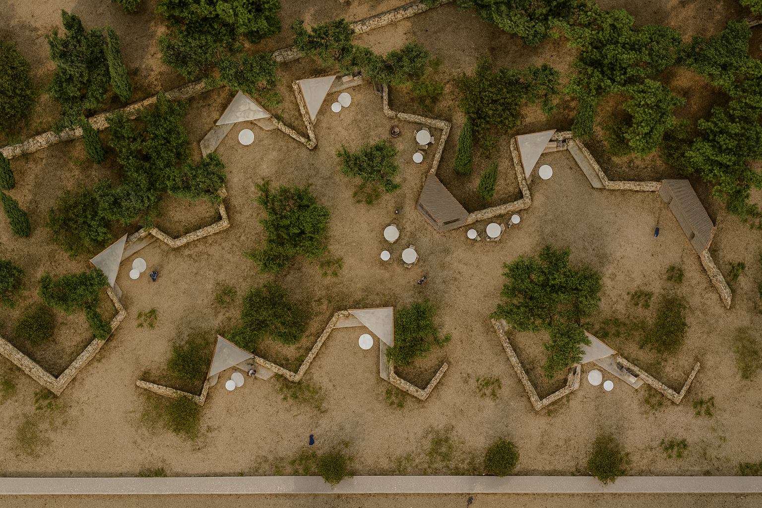 El proyecto rescata tanto la topografía, como los bancales y las líneas de cultivo, y a su vez, rehabilita una serie de edificaciones existentes, ofreciendo una experiencia completa a los usuarios.