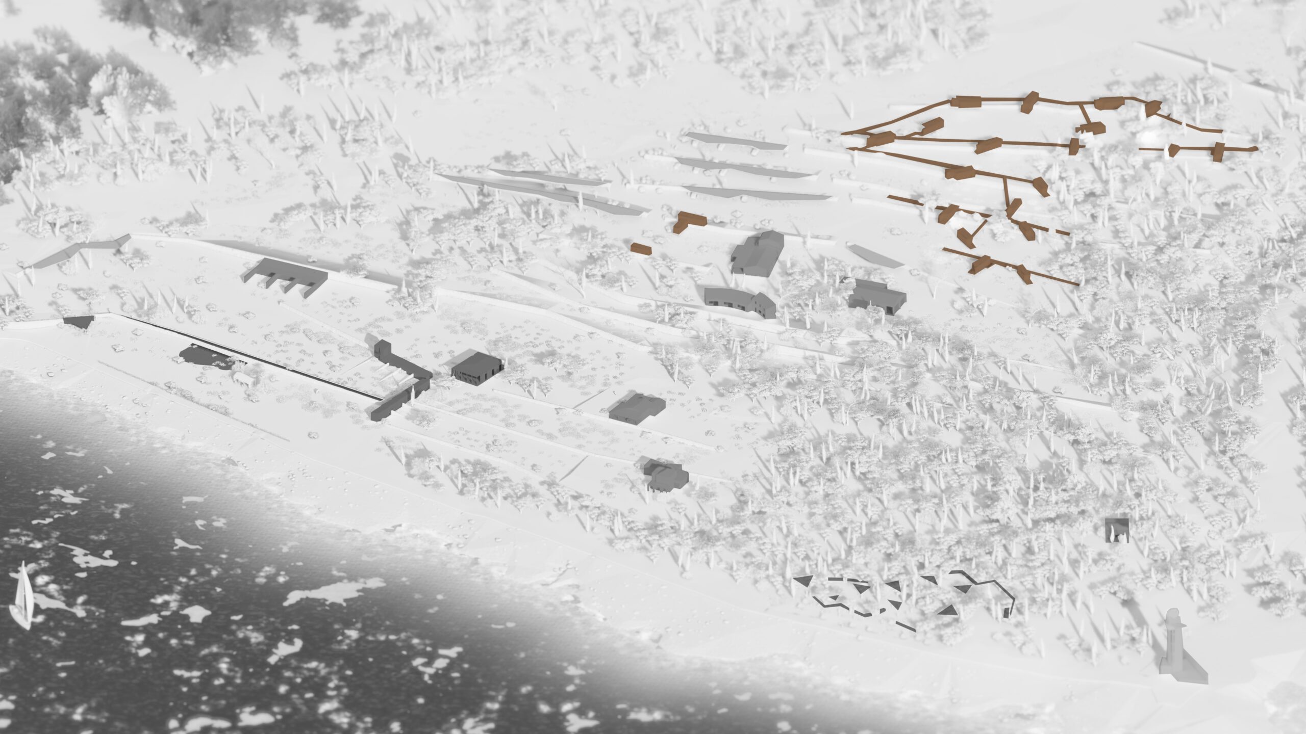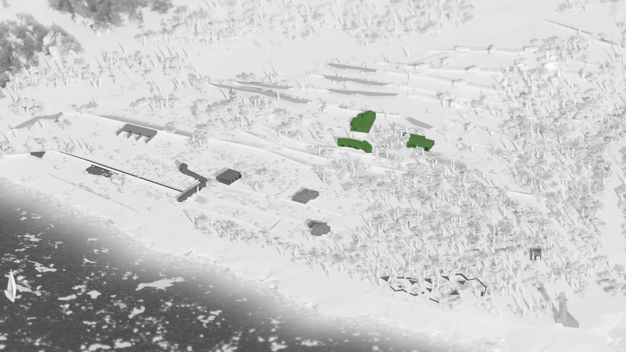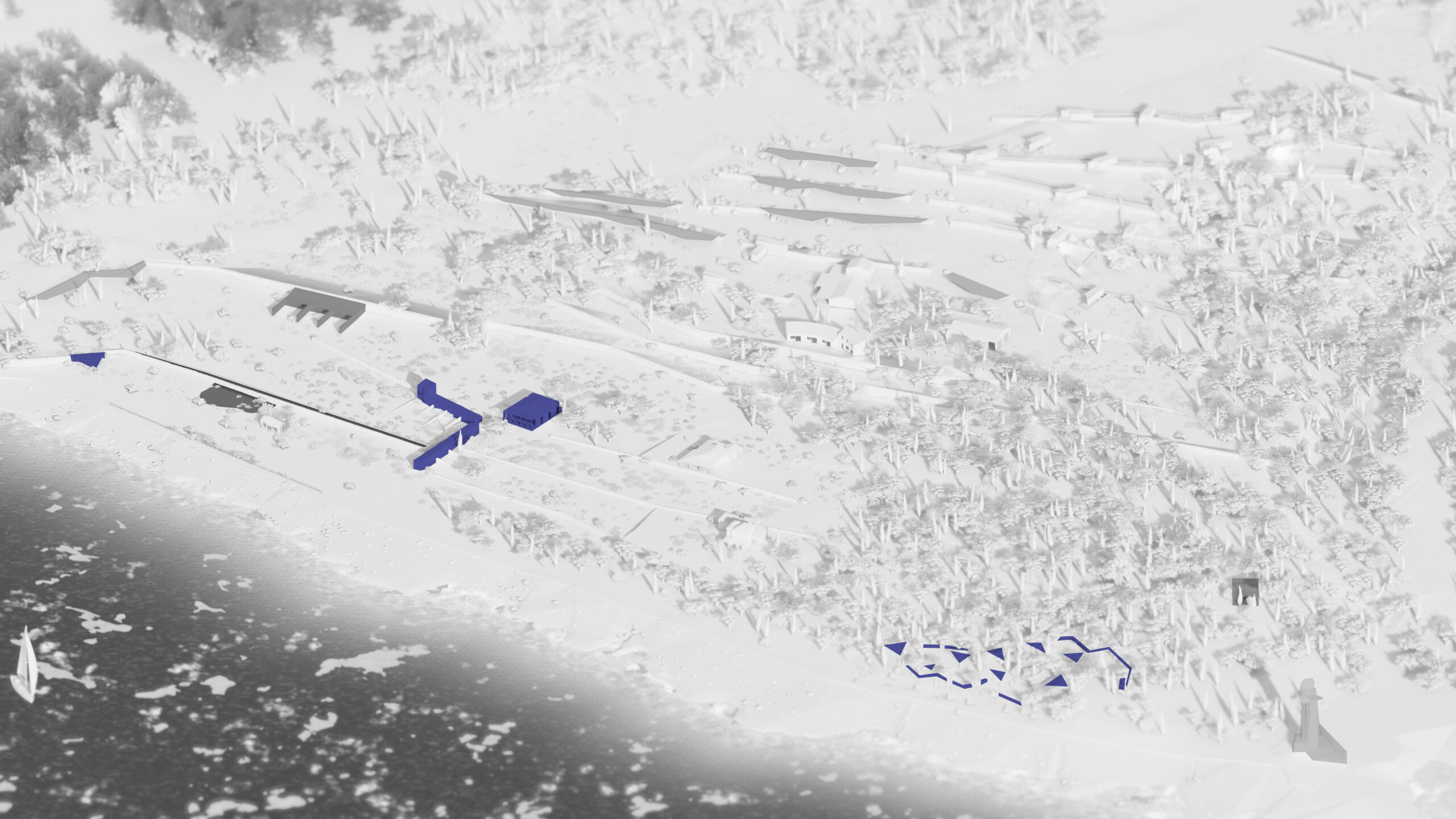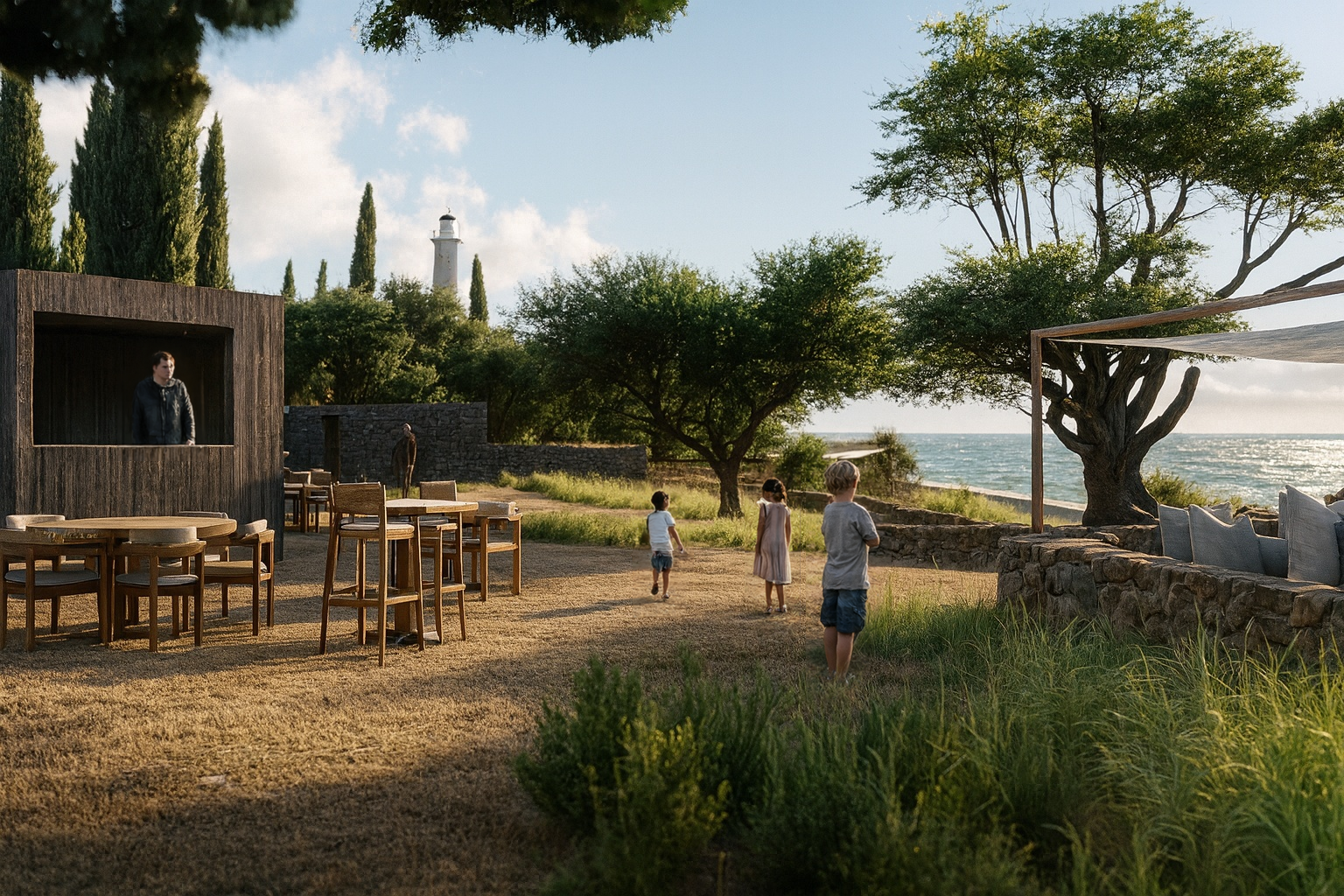Una superficie que, años atrás, estuvo colonizada por bancales de piedra que, marcaban la diferencia topográfica entre la tierra y la costa, caballerizas, campos de cultivo y la vegetación, consolidan una conceptualización que rige el diseño del proyecto.