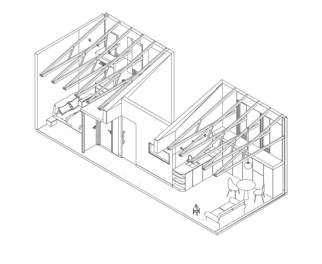 Hay espacios que no solo se habitan: se atraviesan con la memoria, se recuerdan con el cuerpo. En esta pequeña vivienda, tradujimos nuestra mirada sobre el tiempo en una distribución donde cada zona —de día y de noche— se vive a su propio ritmo, pero nunca aislada de la otra. La arquitectura, aquí, no impone una frontera, sino que propone una transición natural, una pausa entre dos tiempos que coexisten.