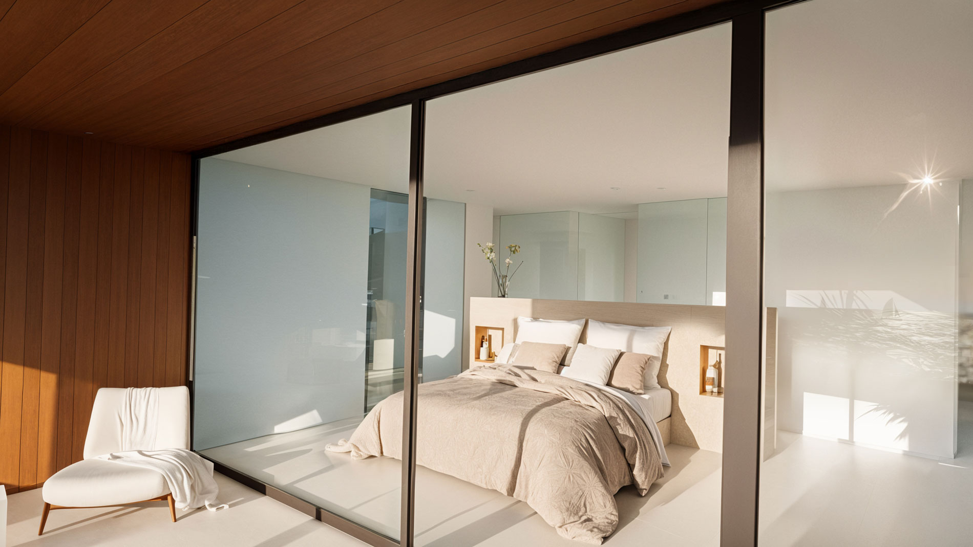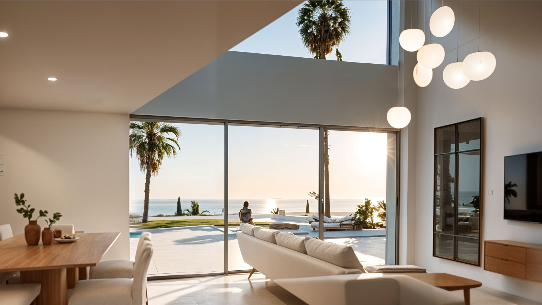 La relación entre el interior y el exterior es fundamental en esta vivienda modular en Alicante. Los materiales, la orientación y la luz se combinan para generar una sensación continua de apertura y confort. La arquitectura trabaja aquí con precisión y naturalidad, creando un entorno donde cada volumen, cada hueco y cada transición tienen un sentido funcional y estético.